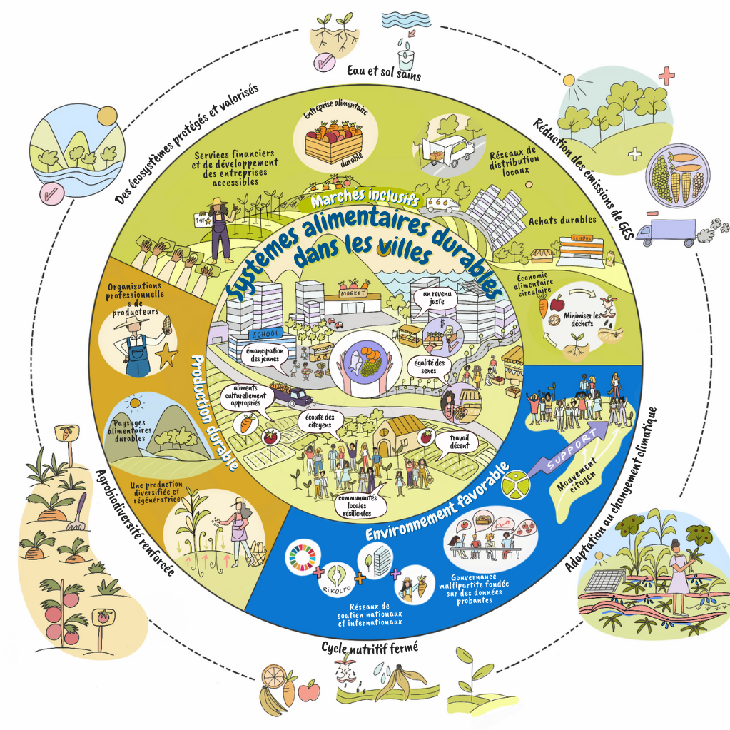les environnements alimentaires urbains et les chaînes d'approvisionnement alimentaire sont plus propices à une alimentation saine, durable et nutritive (SDN) pour tous les citoyens des villes ciblées, y inclus les femmes, les jeunes et les groupes vulnérables dans au moins quatre (04) villes d’Afrique de l’Ouest.